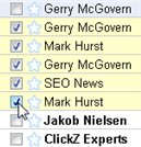 V běžných programech pro Windows jde obvykle označit víc položek najednou kliknutím myší za současného držení klávesy Shift. Víte o tom, že stejným způsobem umožňuje vybrat více zpráv současně i Gmail? Zaškrtněte checkbox u první zprávy bloku, který chcete vybrat, podržte klávesu Shift a klikněte na checkbox u poslední zprávy bloku. Stejným způsobem jdou zprávy také odznačit a opakováním celého postupu lze vybrat či odvybrat i několik nesouvislých bloků zpráv.